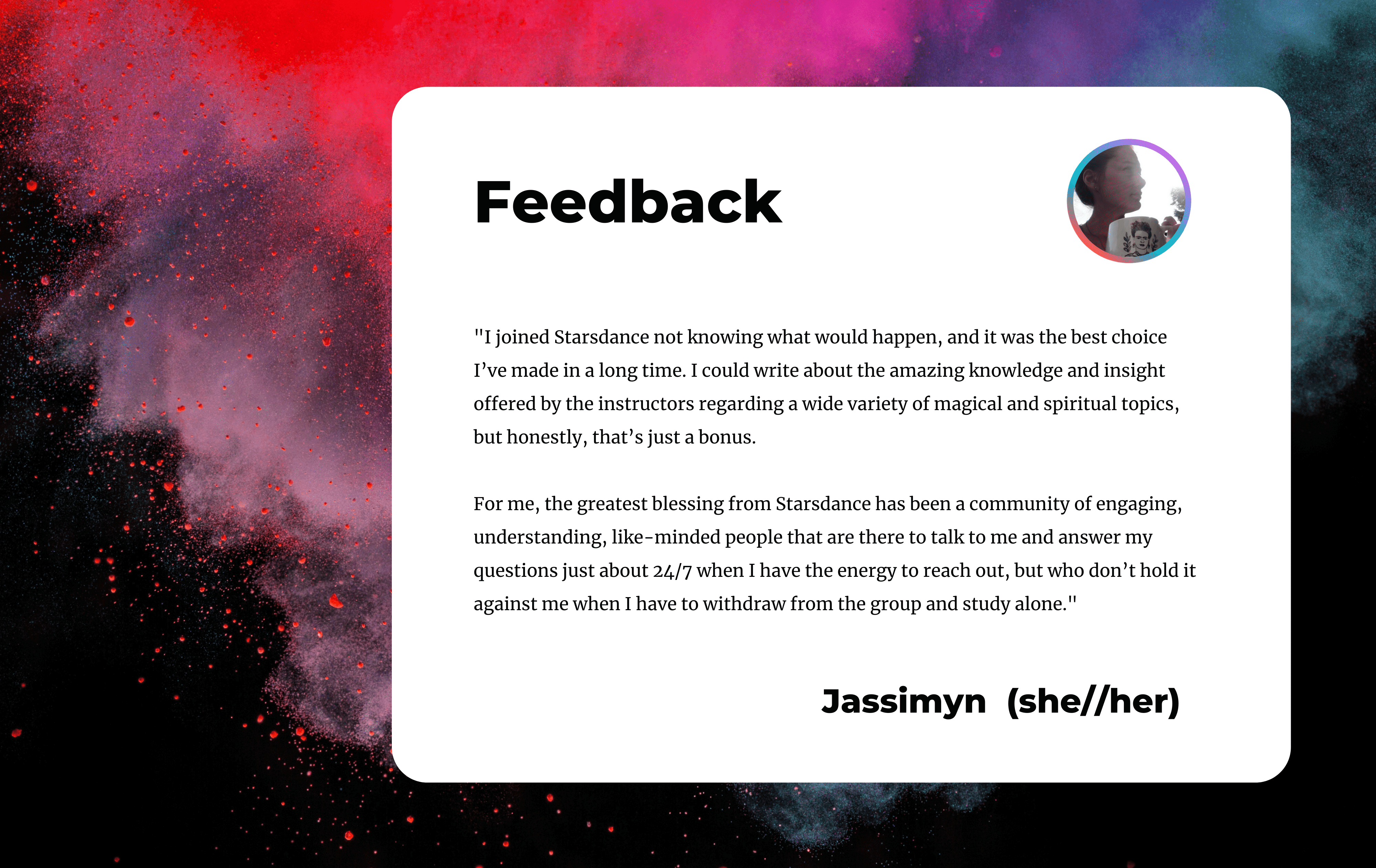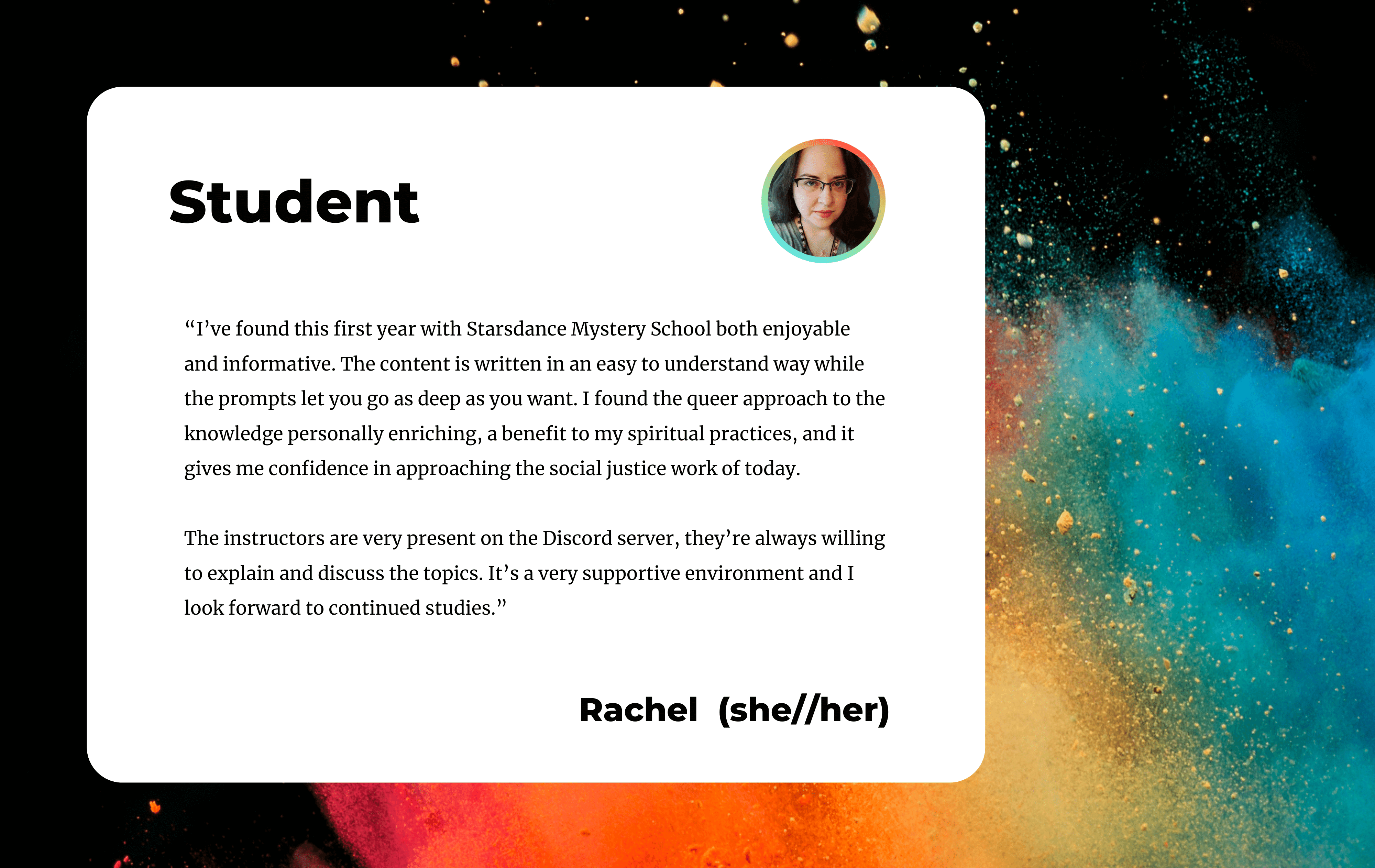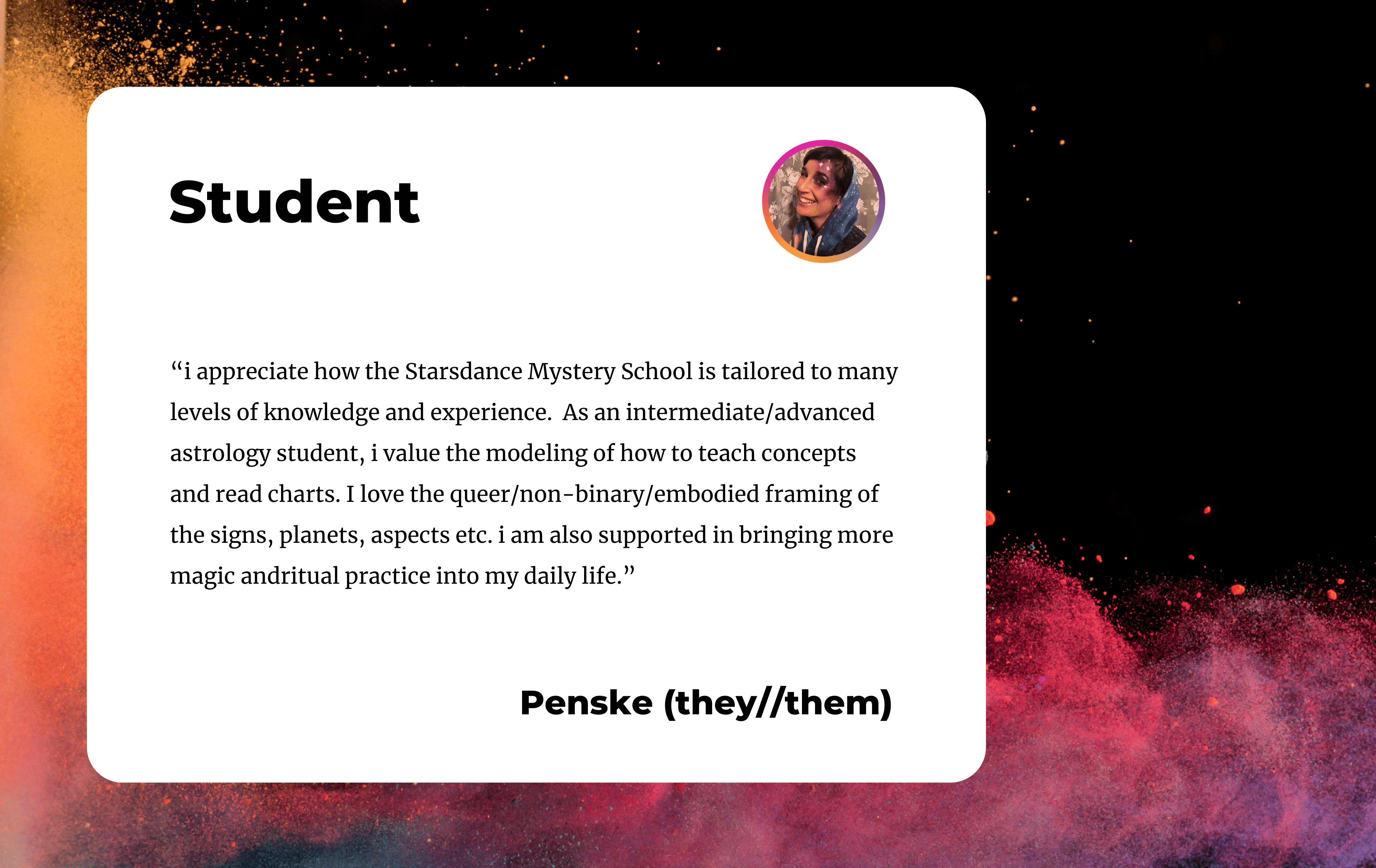 The Starsdance Mystery School team encourages students to add their own unique flavor when analyzing the mysteries above us: we do not claim to have all the answers. We welcome people who identify as Queer and our allies to join us in practicing an astrology of liberation.